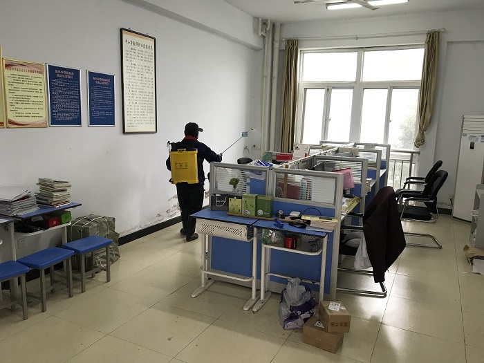 日,利用周末休息时间,总务处组织保洁人员开展了科学消毒工作。