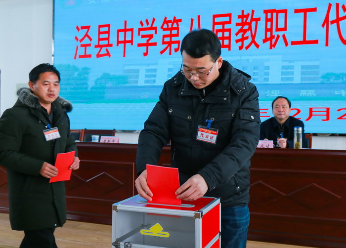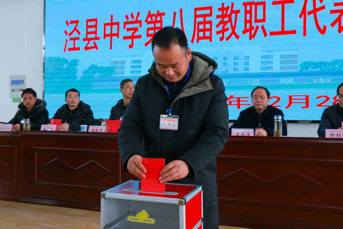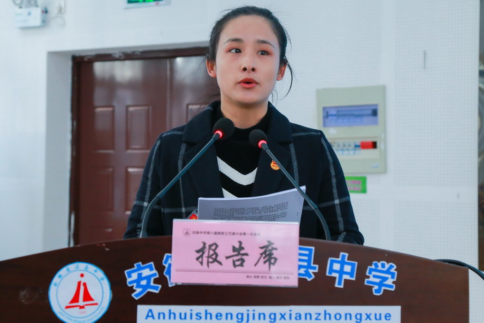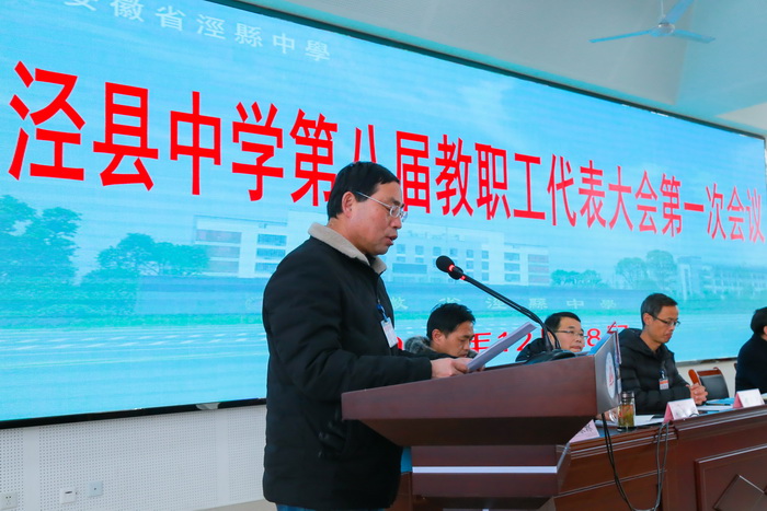 大会审议通过了《泾县中学第八届教职工代表大会第一次会议决议》;校党委书记、校长王永生代表学校党委对工会工作提出了明确希望;校党委委员、副校长杨银宝致闭幕词。会议号召:全体教职员工要在校党委的坚强领导下,认真学习贯彻党的十九大和十九届二中、三中、四中全会精神,以习近平新时代中国特色社会主义为指引,始终秉承“尽心尽职尽力、成人成才成功”的办学理念,大力弘扬“厚德尚学、敬业奉献、务实创新、团结奋进”的泾中人精神,不断增强服务意识和责任意识,不忘初心,牢记使命,敢于担当,敢于攻坚,凝心聚力,负重奋进,认真钻研业务知识,提高自身综合素质,全面推进素质教育,进一步提高教育教学质量和高考升学率,为把188金宝博唯一官网_wap.sports918.com建设成为县委县政府放心、人民群众满意的“全市前列、皖南一流、江南名校”的泾县人民家门口的优质省级示范高中而努力奋斗!