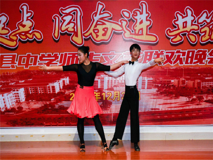 晚会以舞蹈《寄明月》拉开了文艺联欢会的序幕。姑娘们美若仙子,琴声悠扬,营造出唯美的意境;英文歌曲《as long as you love me》带着大家感受欧美风情,别具味道;蒙古舞蹈《云灯哥哥》将晚会掀起高潮,原来男生跳舞也是这样柔美的;在晚会中场举行了高三学姐新年寄语和游戏环节,同学们意犹未尽,实在是欢乐;双人拉丁舞引爆全场,原来男生的拉丁也可以如此的妩媚、妖娆;特别是《爱我泾中》魔术表演将晚会现场一次又一次推向高潮;晚会在大合唱励志歌曲《仰望星空》中圆满的落下帷幕。