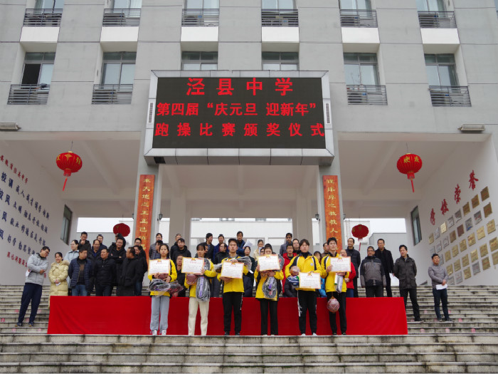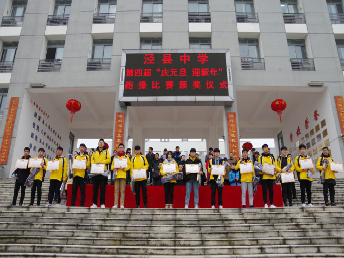 同时,升旗仪式上进行了爱心捐款倡议,并举行了泾县中学第四届“庆元旦 迎新年”跑操比赛的颁奖仪式。