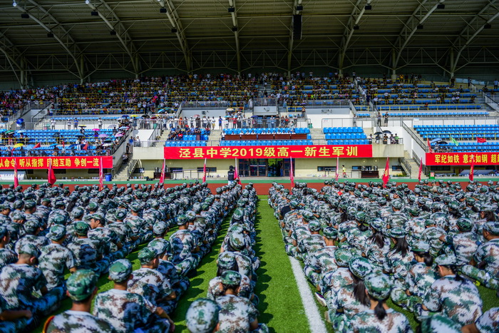 8月20—25日,在奥体中心运动场举行了为期6天的高一学生军训。烈日骄阳,挥汗如雨,身形挺拔,英姿飒爽。泾中学子们在磨砺中成长,迷彩军训充分展示了当代中学生激情四溢的精神风貌和“泾中人”蓬勃向上的青春风采。由于军训工作扎实有效,学校被评为宣城市“高中军训工作先进单位”,并被推荐申报为“安徽省国防教育特色示范校”。