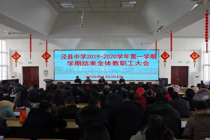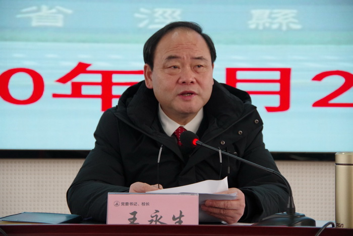 1月20日下午,188金宝博唯一官网_wap.sports918.com在阶梯教室召开2019-2020学年第一学期学期结束全体教职工大会,县人大常委会副主任,校党委书记、校长王永生主持大会。