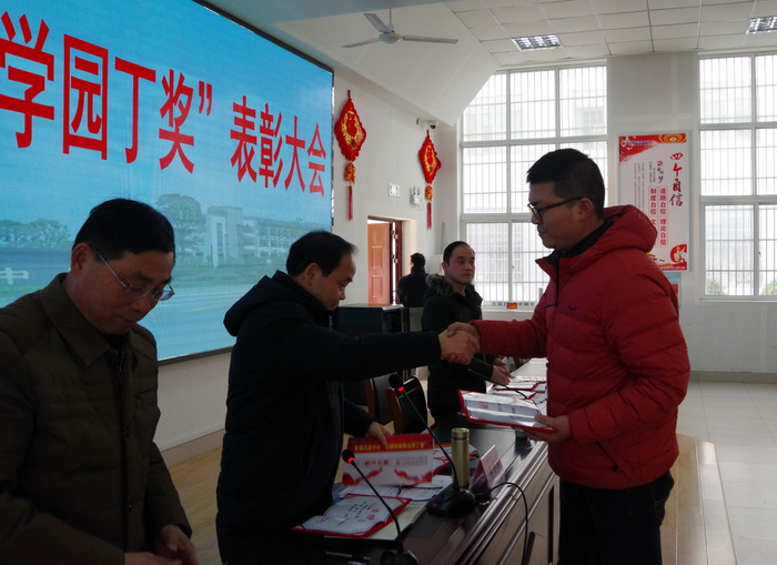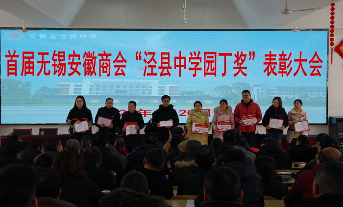 会议的第一阶段举行了首届无锡安徽商会“泾县中学园丁奖”表彰大会。会上,副校长翟礼文简要介绍了无锡安徽商会“泾县中学园丁奖”,并宣读了首届无锡安徽商会“泾县中学园丁奖”表彰决定;与会领导为获得表彰的教师颁奖。王校长希望受表彰的教师不忘初心,牢记使命,继续发扬泾中人精神,努力工作,再创佳绩,并号召全体教职工以他们为榜样,牢固树立大局意识,发扬无私奉献的精神,爱校护校,爱岗敬业,勤奋工作,为实现强校梦做出应有的贡献。