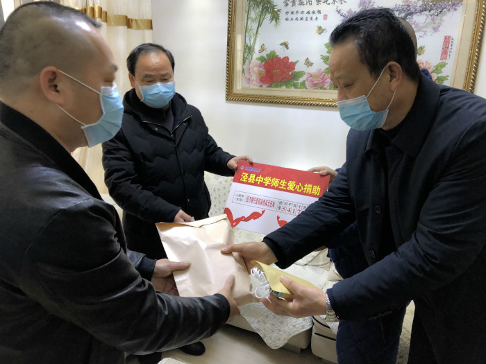 爱在校园,情暖人间。3月12日下午,县人大常委会副主任,校党委书记、校长王永生一行,带着全校师生的关怀和温暖前往患病学生郭天天家中探望慰问,并将全校师生的爱心捐款54177.5元亲手交到了郭天天同学的手中。