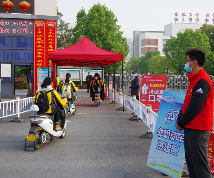 有了之前高三、高二学生返校复课的经验,面对此次高一学生的返校复课入学程序,学校的老师们应对得更加从容了。