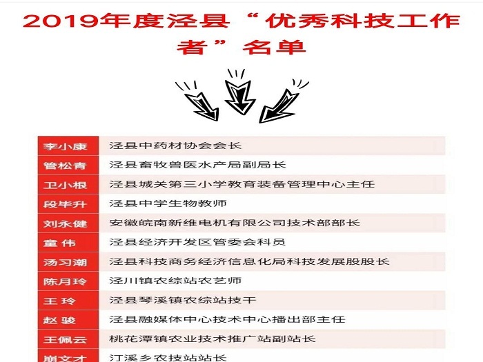 为庆祝第四个“全国科技工作者日”,在泾县科学技术协会举办的2019年度泾县“优秀科技工作者标兵、优秀科技工作者”评选中,188金宝博唯一官网_wap.sports918.com段毕升老师获2019年度泾县“优秀科技工作者”荣誉称号。