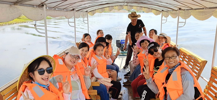 此次活动在校领导的高度重视和关心支持下,校工会精心策划,制定切实可行的活动方案,召开专门会议,责任到人,主动作为。活动中,看到“黄桃园中摘黄桃”,每位女教职工手中的篮中硕大的黄桃只只可爱;“牡丹园中赏花卉”,留下了女教职工美丽的身影;“落星潭中乘竹筏”,沿美丽的青弋江观赏两岸美景,撩水嬉戏。