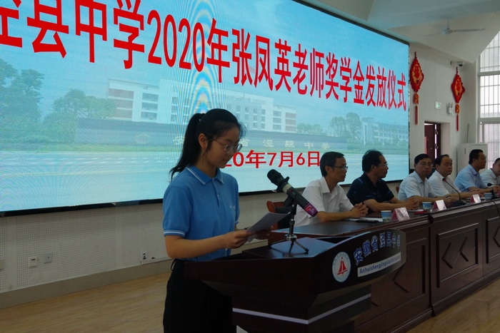 县人大常委会副主任,校党委书记、校长王永生在讲话中,首先代表全体师生深切缅怀张凤英老师,感恩她的无私奉献和心系泾中学子、情系泾县教育的大爱情怀!向受到表彰的十位同学表示热烈的祝贺!向莅临现场的同学家长表示衷心地感谢!王校长强调,刘垂玗、张凤英老夫妇一直心系学校发展,支持学校办学,关爱泾中学子,他们设立“张凤英老师奖学金”凝结了老一辈“泾中人”对学校的深厚情怀,是我们学习的楷模!奖学金的设立,将成为推动188金宝博唯一官网_wap.sports918.com教育教学质量稳步提升的强大动力,必将成为泾县中学办学历史上最光辉的一页!王校长希望全校上下要心怀感恩,以“涓滴之水”回报社会;全体同学要砥砺奋进,以“天生我才”奋起直追;全体老师要乐教善教,以“泾中情怀”培育英才。