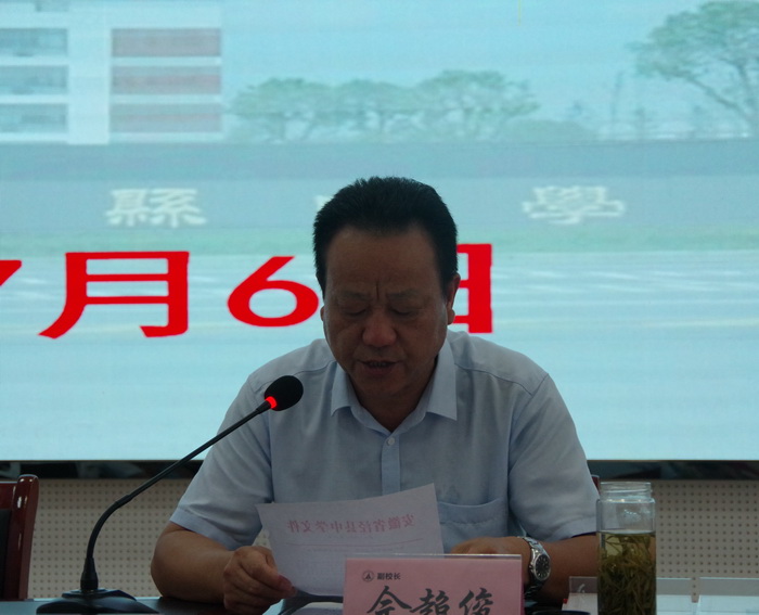 副校长杨银宝在仪式上宣读了刘垂玗老师的手书祝福语,鼓励大家应以天下为己任,为社会效力。