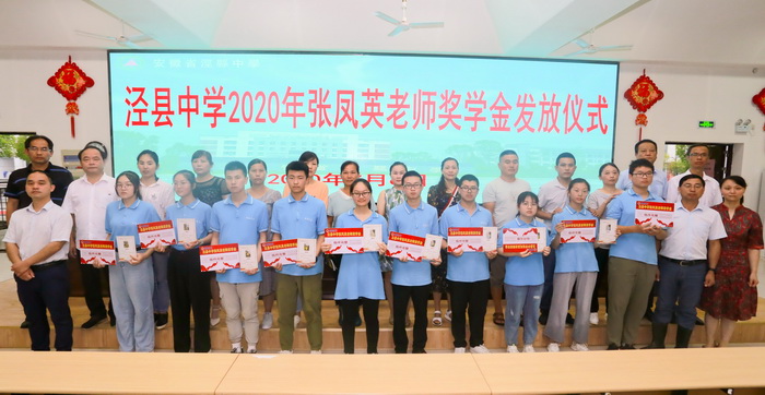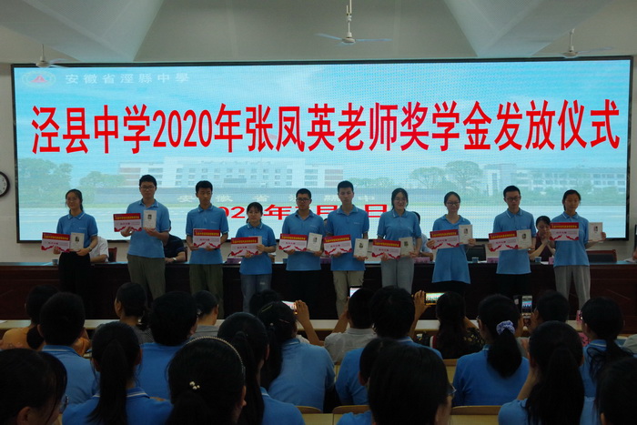 仪式上,副校长翟礼文简要介绍了“张凤英老师奖学金”设立的基本情况;副校长佘超俊宣读了表彰决定,强调本次表彰是在2018级高二年级部依据学生近期三次考试成绩综合评选推荐的基础上,经校党委会研定,并报捐赠方同意,公示无异议,学校决定授予高二(1)班黄星宇、高二(1)班沈甜甜、高二(1)班张文静、高二(3)班蔡翔、高二(1)班马亦杨、高二(3)班张薇、高二(2)班马海峰、高二(2)班程希文、高二(2)班王馨悦、高二(2)班徐文婕等十位同学2020年泾县中学“张凤英老师奖学金”。学校领导为受表彰的学生颁发荣誉证书和奖金,鼓励受表彰的同学珍惜荣誉,戒骄戒躁,再接再厉,再创佳绩,争做新时代的优秀中学生。