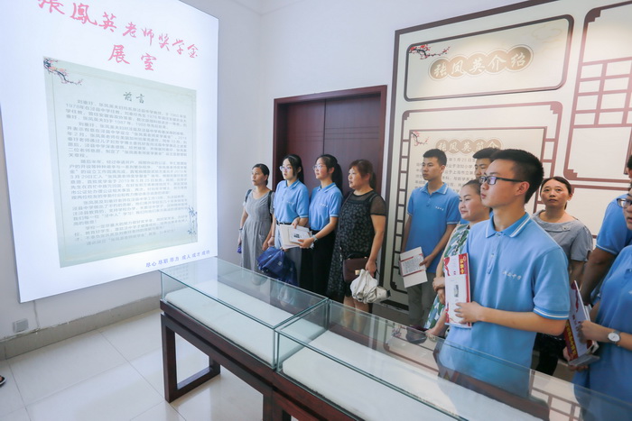 仪式结束后,参加仪式的获奖学生、家长和学校领导合影留恋,获奖学生和家长还怀着感恩和敬佩之情一起参观了“张凤英老师奖学金”展室。