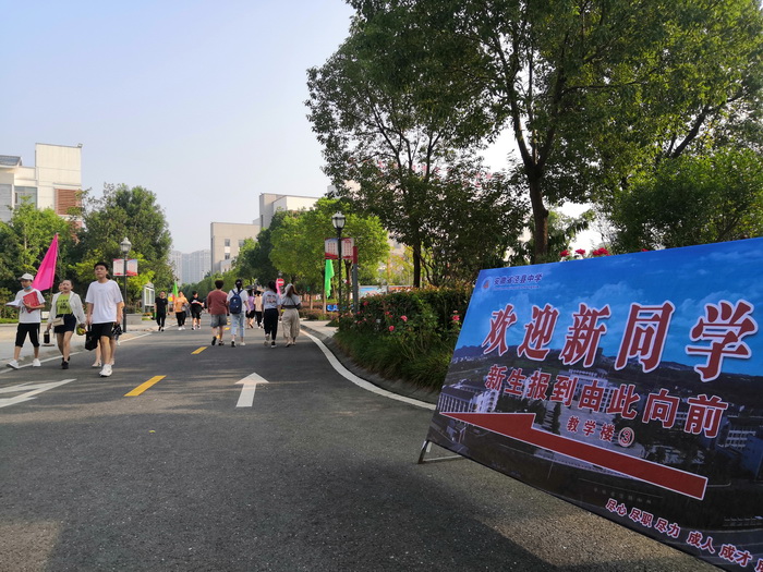 在收获的初秋时节,8月23日上午,泾县中学迎来了充满青春活力的2020级高一新生。整个校园内到处洋溢着迎接新生的热情和喜庆气氛,花木掩映,彩旗飘扬,道路整洁,音乐激昂,各个电子屏上“泾县中学欢迎你”“热烈欢迎新同学”等字样也显得格外醒目亲切。