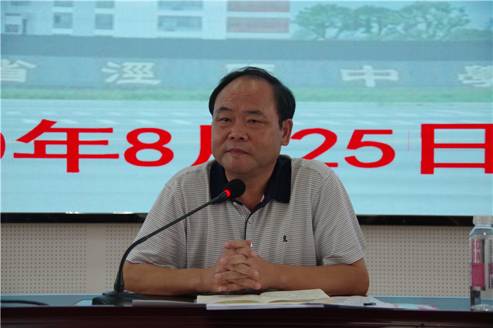 8月25日下午,188金宝博唯一官网_wap.sports918.com在阶梯教室召开2020级高一新生军训工作会议,学校领导以及全体高一班主任、教官、工作组成员参加会议。会议由副校长佘超俊主持。