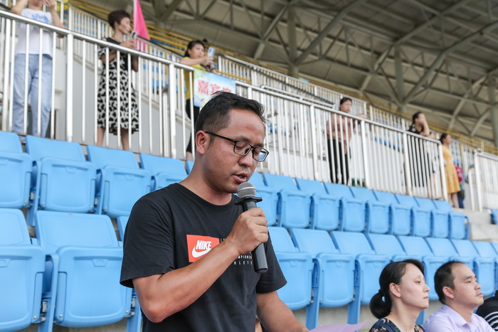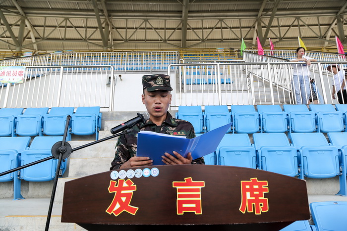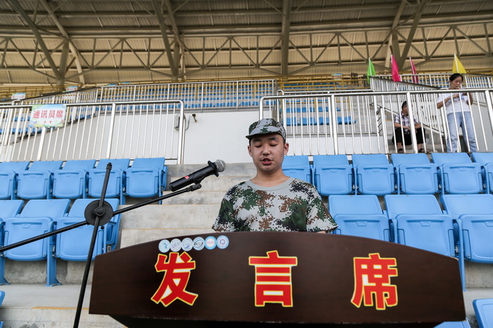 8月26日下午,奥体中心运动场秋风送爽,彩旗飘展,2020级高一新生军训动员大会在这里隆重举行。县人大常委会副主任、校党委书记、校长王永生等校领导班子全体成员,县教体工委委员、副局长卫建平,高一全体班主任及800余名学生,负责军训的领导、教官等出席开训动员大会。动员大会由副校长杨银宝主持。