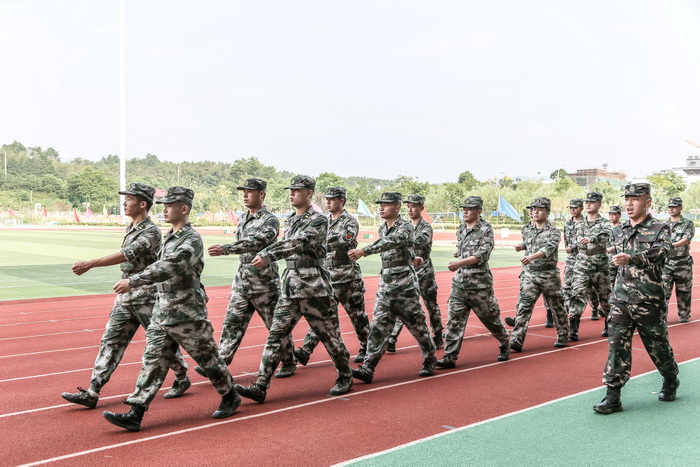 开训仪式后,同学们精神抖擞,排着整齐的队伍,在教官的指挥下,在自己班级场地认真训练,开始了为期6天的军训。