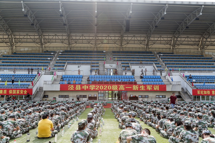 最后,本次军训团政委,县人大常委会副主任、校党委书记、校长王永生宣布:泾县中学2020级高一新生军训正式开始。动员大会在《中国人民解放军进行曲》中圆满结束。