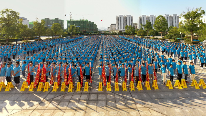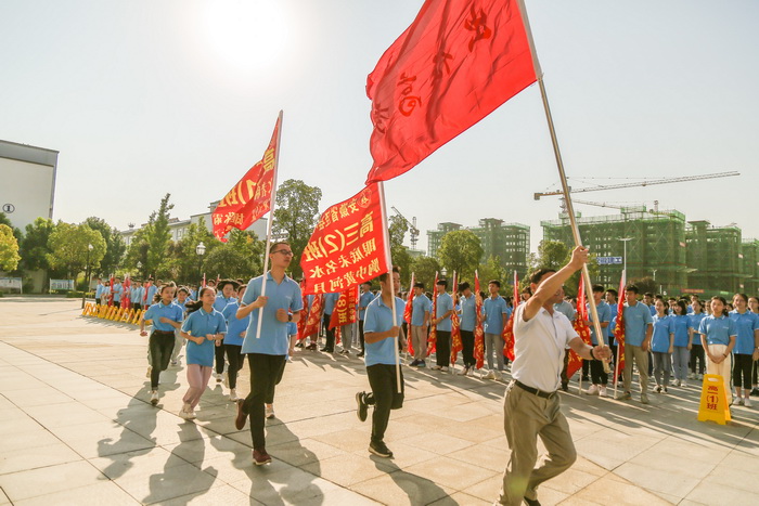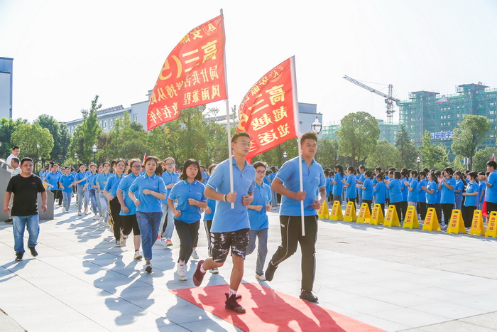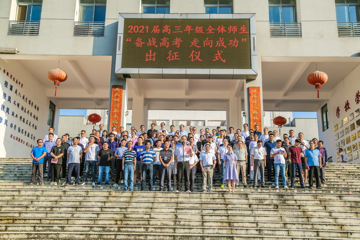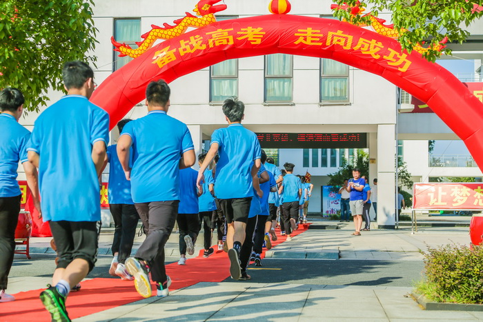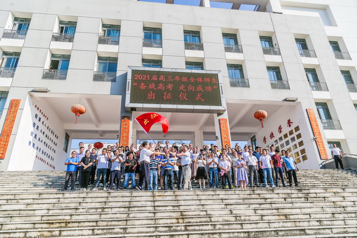最后,王校长宣布:泾县中学2021届高三全体师生高考出征。在响彻校园的歌曲《怒放的生命》中,高三年级部主任许小江副书记举旗带领全体2021届高三师生首先迈过“备战高考 走向成功”高考彩虹门,然后各班级按班级顺序,在班主任老师的带领下分两路纵队小跑迈过彩虹门,一路口号响亮,誓言铮铮。