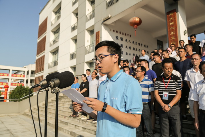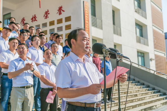 县人大常委会副主任、泾县中学党委书记、校长王永生作动员讲话。王校长强调,新的学年要聚焦校园文化建设,以“文”化“人”;要倾力高水平学校发展,以“质”立“校”;要加快学校内涵发展,以“品牌”树“丰碑”;要强化教学质量提升,以“成绩”续“辉煌”,抓住新机遇,直面新挑战,对焦新目标,创造新精彩,续写新篇章,师生尽心尽职尽力,筑梦追梦圆梦,努力把泾县中学办成“学生信任、家长放心、社会满意”的泾县人民家门口的优质省级示范高中。王校长希望全体高三学子从今天起要坚定信心、明确目标,端正态度、心无旁骛,磨炼意志、顽强拼搏,讲究方法、科学备考;希望全体高一、高二的同学牢固树立“成人成才成功”的理念,热爱生活、修身成人,做一名严格自律,规范行为的人;刻苦学习、立志成才,做一名年轻有为,担当责任的人;勤奋进取,不断进步,做一名全面发展、奋斗成功的人;希望全体老师们不忘“尽心尽职尽力”,切实做到:不忘初心,以德立身,忠诚事业,做一名“心中有理想、身上有激情、工作有目标、人生有追求”的人民教师;学为人师,立足本职,教书育人,以高尚的人格感染学生,以广博的知识引导学生,以博大的胸怀爱护学生,努力做学生健康成长的引路人;心中有情怀,肩上有担当,团结协作,尽心尽职,全心投入,静心教书,潜心育人,努力工作,始终心系学生的成长和学校的发展,为实现“全市前列、皖南一流、江南名校”的强校梦做出努力和贡献!