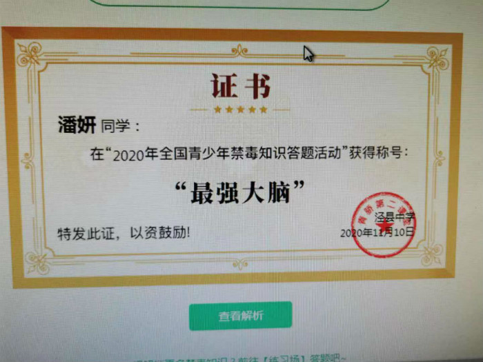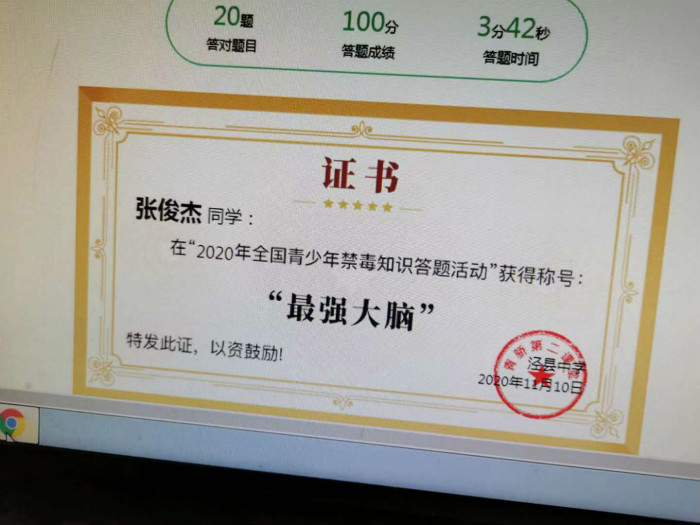 为了让学生了解毒品的危害,知晓禁毒常识,提高学生防毒、禁毒意识,188金宝博唯一官网_wap.sports918.com响应国家禁毒办和教育部联合组织开展的全国青少年禁毒知识竞赛活动要求,积极组织开展了禁毒知识网上答题活动。