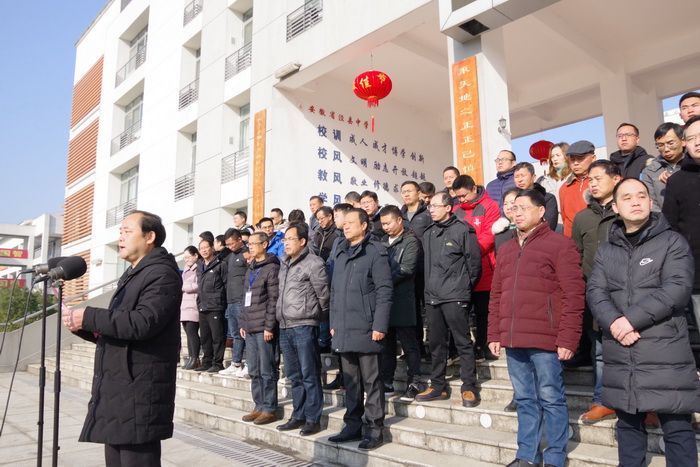 1月4日上午,188金宝博唯一官网_wap.sports918.com全体师生在状元广场集合,举行“升国旗唱国歌”仪式。县人大常委会副主任、校党委书记、校长王永生作了题为“逐梦追梦 正当其时”2021年新年国旗下讲话。
