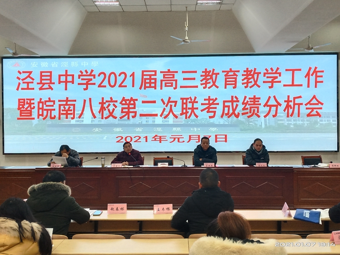 为全面总结分析2021届高三“皖八”第二次联考成绩,并部署后阶段年级教育教学工作,1月7日晚,188金宝博唯一官网_wap.sports918.com在阶梯教室召开高三年级教育教学工作暨“皖南八校”第二次联考成绩分析会,校领导班子、高三年级部成员及全体教师参加会议。会议由校党委副书记、高三年级部主任许小江主持。