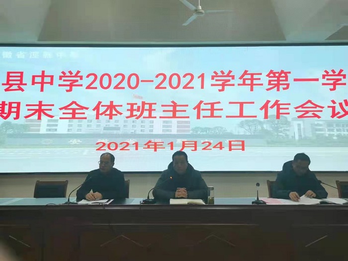 会上,总务处副主任陈长江就期末的班级卫生、校产保护和清查、寒假疫情防控等工作作了布置和强调;教导处副主任李文豹就期末考试的考风考纪、学生规范答题等提出相关要求,并就学生综合素质测评、寒假作业和下学期的相关工作作了布置;政教处主任张俊对本学期德育工作作了简要总结,就期末及寒假的德育及班级管理等各项具体工作作了详细安排和布置,并对学生安全教育与管理、疫情防控的要求、班主任期末工作检查、学生安全文明离校及特殊学生的管理等工作作了进一步的提醒和强调。