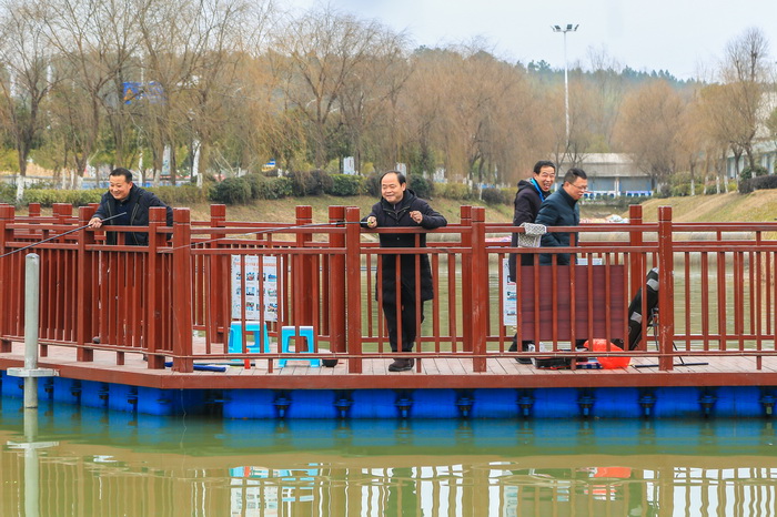 活动当日,举行了简短的活动启动仪式,仪式由副校长翟礼文主持。副校长佘超俊介绍了本次垂钓活动的规则及注意事项,县人大常委会副主任、校党委书记、校长王永生宣布:泾县中学首届“赏明湖迎新春”教职工垂钓活动正式开始。