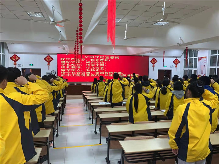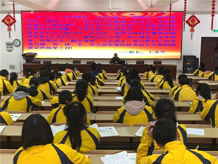一年之计在于春。新学期伊始,为提高学生文明守纪意识、安全意识、爱校护校意识,3月5日晚,188金宝博唯一官网_wap.sports918.com在阶梯教室开展主题为“遵守校纪校规 争做文明学生”新时代文明实践道德讲堂活动,高一高二200多名学生参加了此次活动。政教处主任张俊担任主讲人。