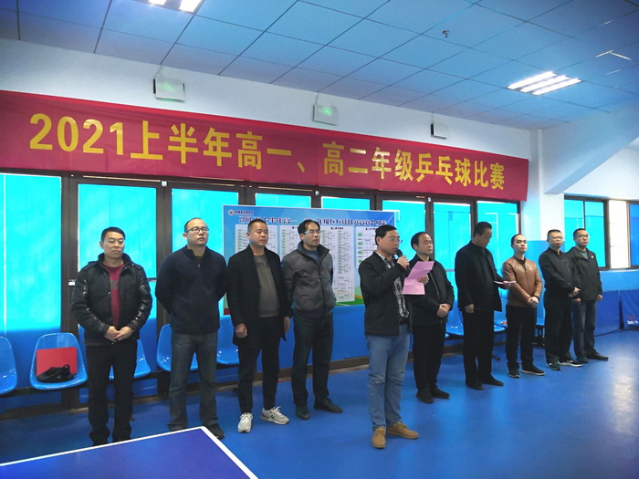 为贯彻“德智体美劳”全面发展方针,推动188金宝博唯一官网_wap.sports918.com乒乓球运动的进一步发展,丰富广大学生的课余生活,展示188金宝博唯一官网_wap.sports918.com学子拼搏进取和昂扬向上的良好精神风貌,4月6日下午,188金宝博唯一官网_wap.sports918.com2021年高一高二年级学生乒乓球春季赛在校乒乓球馆开幕。副校长佘超俊主持开幕式,校班子全体成员及相关处室负责人、裁判员、运动员出席仪式。