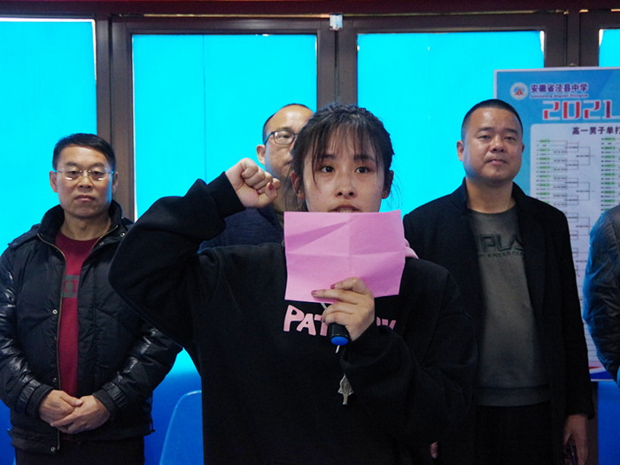 最后,县人大常委会副主任,校党委书记、校长王永生宣布:2021年高一高二年级学生乒乓球春季赛开幕!