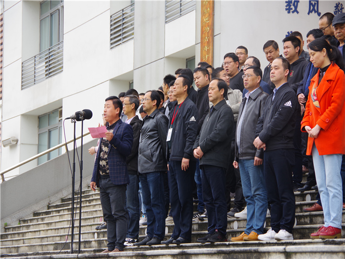 4月26日上午,188金宝博唯一官网_wap.sports918.com全体师生在状元广场隆重集合,举行“升国旗 唱国歌”仪式。校办公室主任、高一(18)班班主任胡承林作了题为“追逐梦想 励志青春”的国旗下讲话。