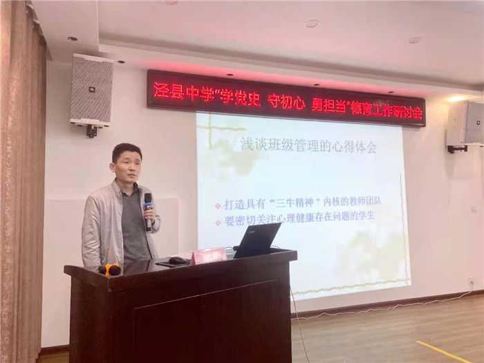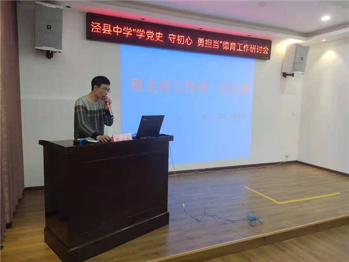研讨会的最后,县人大常委会副主任,校党委书记、校长王永生作了总结讲话。王校长高度评价了此次会议,他说这是一场知与行的总结,经验的展示,思想的提炼,是从事班主任工作心灵的涌动,情感的深化,身心的成长,活动形式好,内容好,效果好。接着,王校长带领大家一起重新温习了总书记wap.sports918.com教育的重要讲话和论述,分享了对教育的理解,并对班主任工作和今后的德育研讨会提出了更高的要求。王校长强调,大家一定要贯彻党的教育方针,做“四有”老师,要肩负历史使命,不忘初心,奉献教育事业,继续做好本职工作,为早日实现强校梦做出自己应有的贡献。