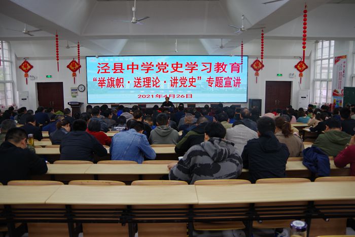 党史学习教育开展以来,188金宝博唯一官网_wap.sports918.com积极搭建学习平台,不断创新学习形式,扎实推动教育走深走实走心。4月26日下午,188金宝博唯一官网_wap.sports918.com就在阶梯教室举行了一场面向全体教职工的党史学习教育“举旗帜 送理论 讲党史”专题宣讲,由校党委书记、校长王永生主讲。