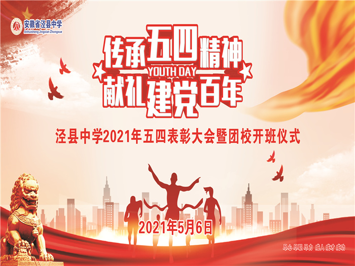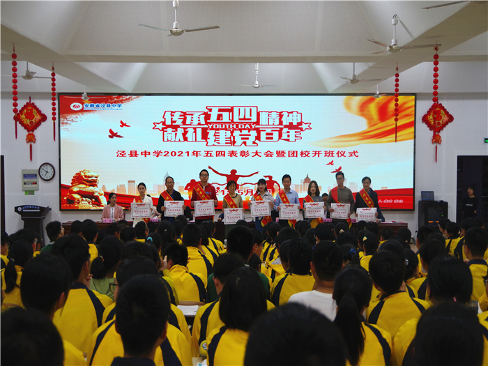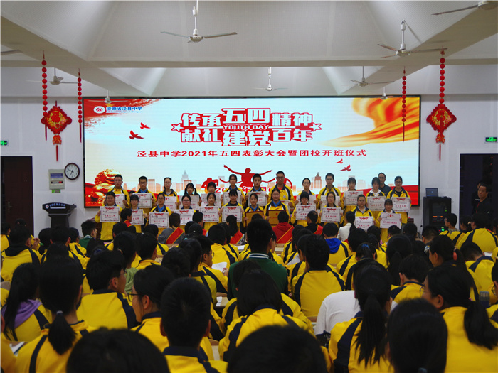 为纪念五四运动102周年,庆祝中国共产党成立100周年,弘扬“爱国、进步、民主、科学”的五四精神,展示泾中青年朝气蓬勃、奋发有为的青春风采,5月6日晚,188金宝博唯一官网_wap.sports918.com举行“传承五四精神 献礼建党百年”五四表彰大会暨团校开班仪式。校党委书记、校长王永生,校党委委员、副校长佘超俊,校党委委员、工会主席黄新平,校党委委员、党办主任程敏娟出席仪式,宣城市政协文史资料特约撰稿人、泾县新四军历史研究会副秘书长翟大雷及受表彰学生参加此次会议。会议由政教处主任张俊主持。