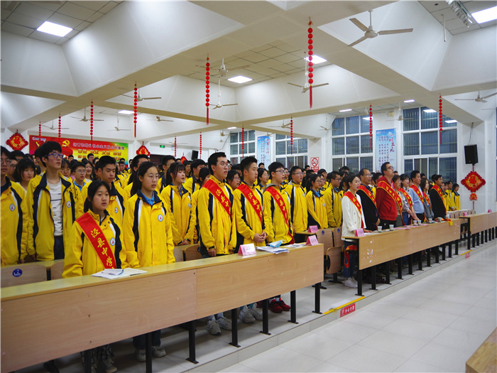 大会第四项,县人大常委会副主任、校党委书记、校长王永生为青年师生作寄语讲话和开班致辞。王校长向受到表彰的先进集体和个人表示热烈的祝贺,向一年来为共青团事业辛勤耕耘、积极奉献的广大团干和青年学子们致以崇高的敬意,向长期以来关心和支持共青团事业的各位老师、学校各部门表示衷心的感谢。他希望全体青年朋友们要坚定理想信念、擦亮团旗底色,不负青春韶华、练就过硬本领,培养高尚品质、夯实人生根基;希望同学们通过团校的学习,能够初步掌握党团的基本知识,熟知入团的条件,端正入团动机,以实际行动争取早日加入中国共青团,努力成为堪当民族复兴重任的时代新人。
