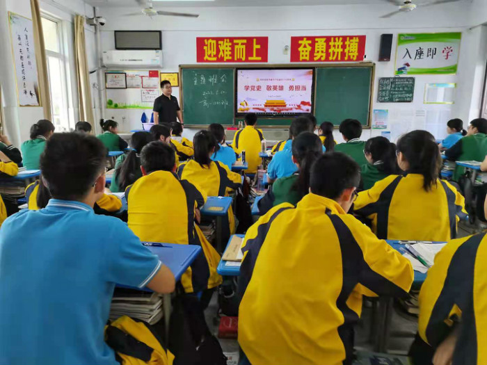 今年,是中国共产党建党100周年。为贯彻习总书记wap.sports918.com“学党史、学国史”重要讲话精神,切实把立德树人作为教育的根本任务,让更多的青少年知党、爱党、亲近党,让青少年们更加直观感受党的艰苦岁月、峥嵘历程与非凡成就,5月10日,188金宝博唯一官网_wap.sports918.com组织全校学生开展“学党史 敬英雄 勇担当”主题班会。