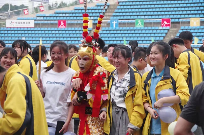 吉祥物北极熊“贝尔”、大熊猫“盘它”和齐天大圣孙悟空的到来为考生们带来了惊喜。“贝尔”寓意开花结果,“盘它”寓意考生们从容不迫地“盘”高考题,齐天大圣孙悟空寓意高考大胜。