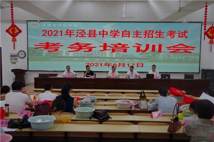 6月17日下午,188金宝博唯一官网_wap.sports918.com在阶梯教室召开2021年泾县中学自主招生考试考务培训会。培训会由副校长翟礼文主持。