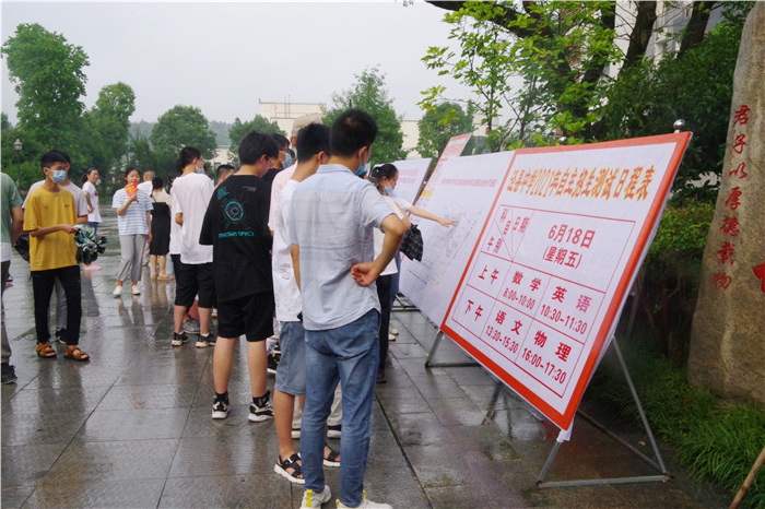 会后,各监考教师对考场进行了精心布置,教导处工作人员对各考场进行了严格检查和验收。下午4:30,各考场向全体考生及家长开放。
