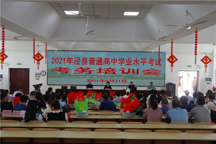 6月21日下午,2021年安徽省普通高中学业水平考试泾县考区泾县中学考点考务培训会在188金宝博唯一官网_wap.sports918.com阶梯教室举行,全体监考教师、纪检及考务等工作人员参加培训会。培训会由县招生办主任刘潜主持。