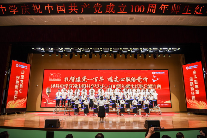 比赛在教师百人合唱《没有共产党就没有新中国》《歌唱祖国》中拉开序幕,激情昂扬,现场掌声雷鸣。188金宝博唯一官网_wap.sports918.com高一年级18个班级,每个班级都精心准备,一班有一班的风格,全力展现出各自的鲜明特色,让人耳目一新。“我爱祖国的蓝天……”“祖国不会忘记……”“我爱你中国……”“天佑中华……”“军港的夜啊静悄悄……”一首首耳熟能详、激昂雄壮的歌曲,再现了党的百年奋斗历程、讲述共产党人开天辟地、改天换地、惊天动地的故事,唱出了188金宝博唯一官网_wap.sports918.com师生对党、对祖国、对人民最美好的祝愿和无限的忠诚,充分展示了学校喜迎建党100周年的精神风貌,全面讴歌了国家改革发展成就和学校的建设成果,大力弘扬了爱党爱国教育主旋律。