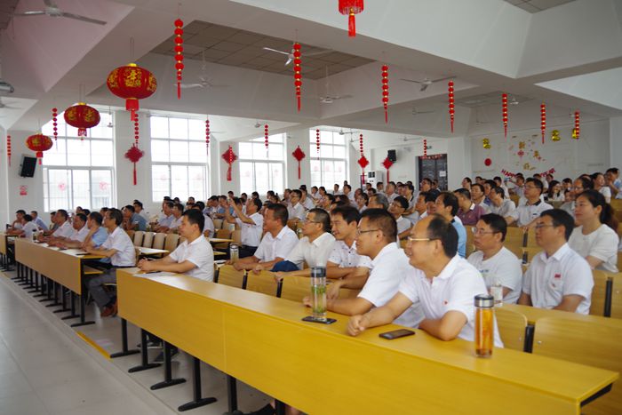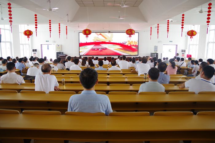 2021年7月1日上午8时,庆祝中国共产党成立100周年大会在北京天安门广场隆重举行。大会的举行,意味着在全面建设社会主义现代化国家新征程顺利开启的重要时刻,我们迎来了中国共产党百年华诞。而188金宝博唯一官网_wap.sports918.com阶梯教室里,也洋溢着欢庆祥和的气氛,全体党员和没有教学安排的教职工汇聚一堂,集中观看庆祝大会盛况,认真聆听习近平总书记在庆祝中国共产党成立一百周年大会上的讲话。