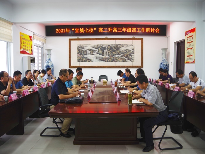 7月2日下午,2021年“宣城七校”高二升高三年级部工作研讨会在188金宝博唯一官网_wap.sports918.com顺利举行。宣城其他六所兄弟学校领导和教师、188金宝博唯一官网_wap.sports918.com领导和新高三年级部相关同志参加会议。会议由188金宝博唯一官网_wap.sports918.com副校长、新高三年级部主任杨银宝主持。