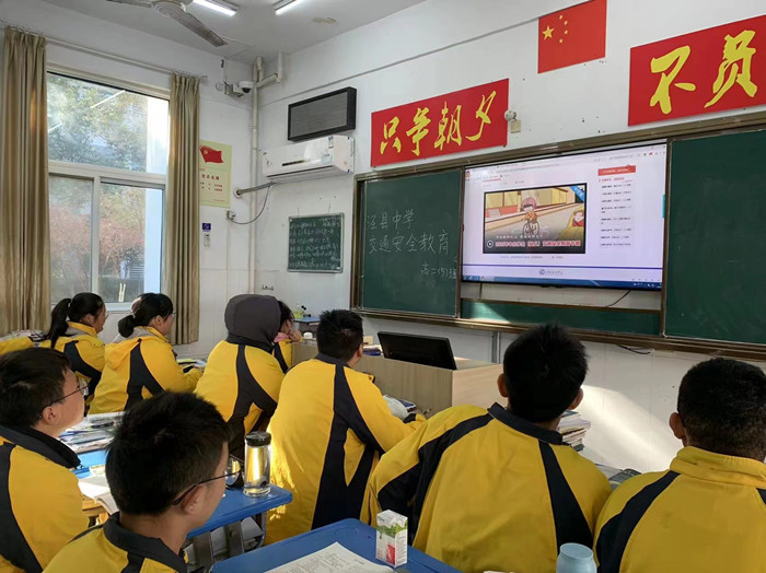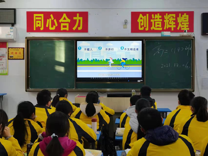 利用多媒体教学设备,播放交通安全规章制度的教学视频,展示相关图片,班主任进行宣传教育并组织学生发言,明确交通事故的严重危害,各班班主任还带领学生学习了交通信号、自行车行车安全、安全乘坐交通工具等安全知识,介绍了道路上存在的风险。