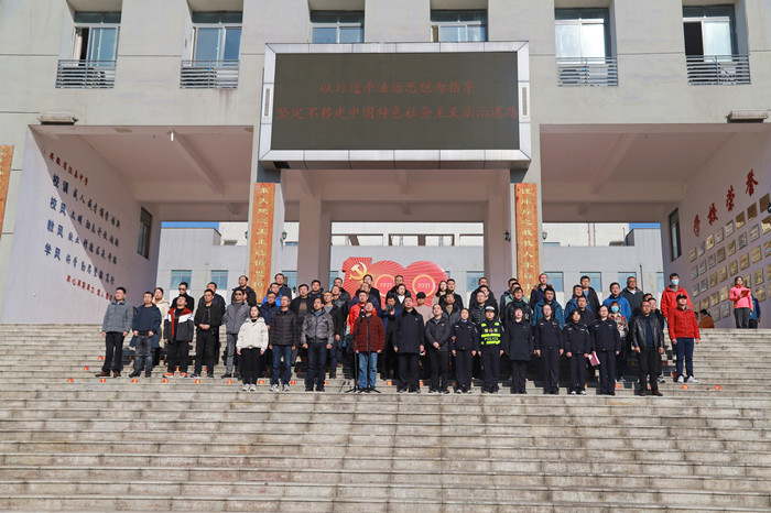 在11月29日上午升旗仪式上,泾县司法局普法办梁荟文股长做了“以习近平法治思想为指引,坚定不移走中国特色社会主义法治道路”为主题的国旗下讲话并对全体师生发出“尊崇宪法地位,自觉增强宪法意识!学习宪法知识,争当守法用法模范!