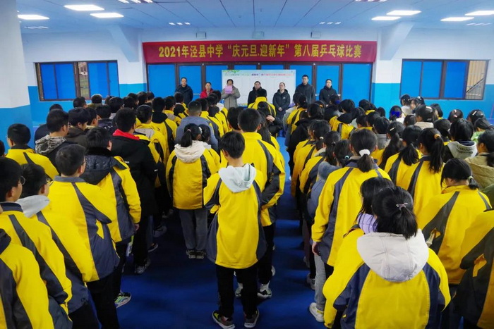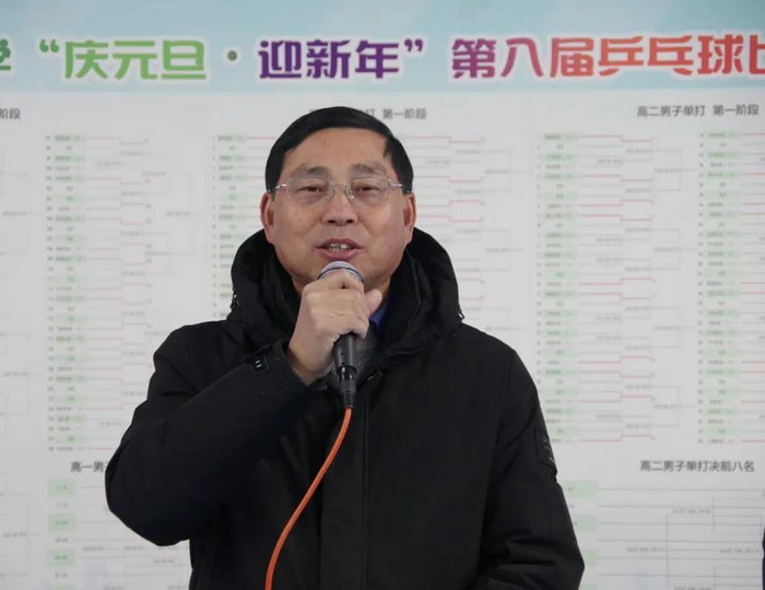校党委副书记许晓江宣布:泾县中学第八届学生乒乓球比赛开幕!
