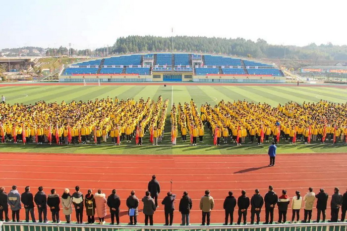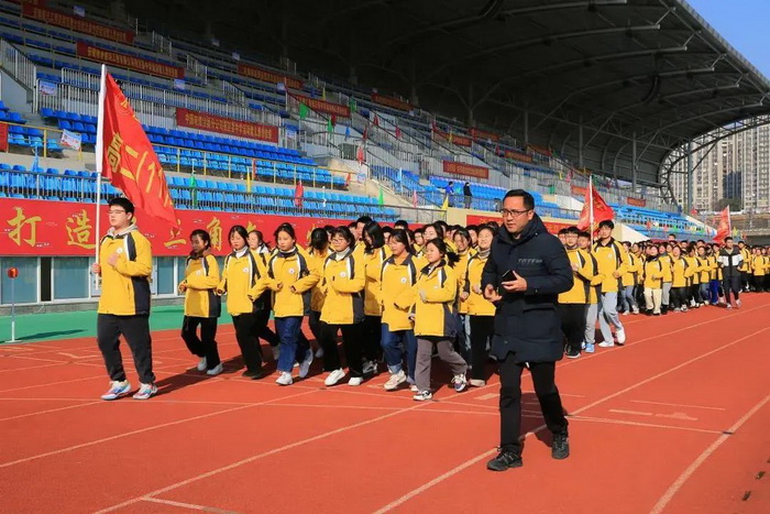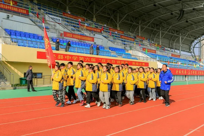 为进一步推动188金宝博唯一官网_wap.sports918.com阳光体育活动的开展,检阅大课间跑操质量,充分展示188金宝博唯一官网_wap.sports918.com学生朝气蓬勃的精神风貌和强烈的集体荣誉感,12月29日上午,188金宝博唯一官网_wap.sports918.com在奥体中心运动场举行第六届“庆元旦 迎新年”跑操比赛,全校共53个班级2600余名学生参加了此次跑操比赛。