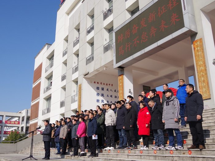 2月21日上午,188金宝博唯一官网_wap.sports918.com全体师生在状元广场隆重集合,举行新学期第一次“升国旗,唱国歌”仪式,县人大常委会副主任、校党委书记宋军作了题为“踔厉奋发新征程笃行不怠奔未来”的国旗下讲话。