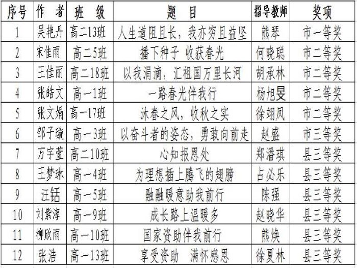为大力宣传国家资助政策及成效,充分展现当代学生诚实守信、自强自立、立志成才、敢于担当、感恩报国的精神风貌,宣传家庭经济困难学生通过资助成长成才的先进事迹,市县开展了“资助政策 助我成才”征文活动。188金宝博唯一官网_wap.sports918.com积极组织受资助的学生撰写征文,辅导教师认真指导,优秀学生作品经推荐参加宣城市教育民生工程集中宣传征文评选活动,多名学子荣获佳绩奖,特向全体师生报喜!