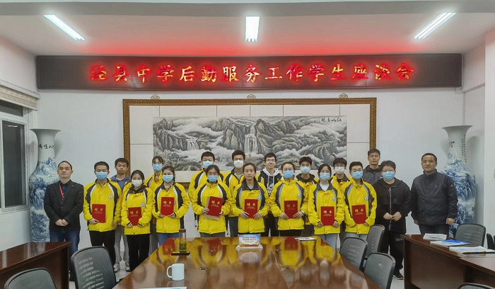 会议最后,出席会议的学校领导和后勤服务中心工作人员向同学们发放了后勤服务中心学生监督员聘书并合影留念。